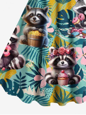 Graphic Dresses > Plus Size Flowers Tropical Leaf Raccoon Print Hawaii Tank Dress
