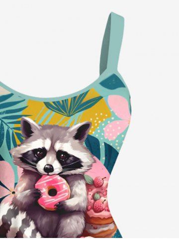 Plus Size Flowers Tropical Leaf Raccoon Print Hawaii Tank Dress - Multi-a - M
