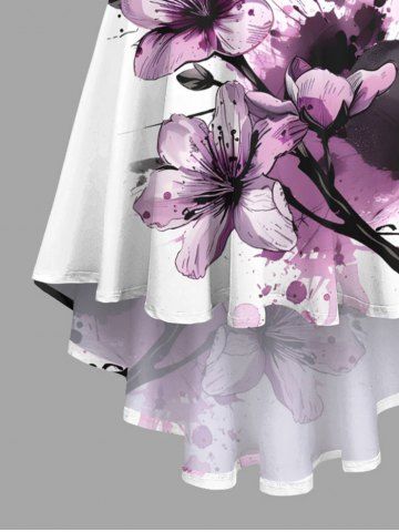 Plus Size Flowers Watercolor Paint Splatter Print High Low Hawaii Cami Dress - Purple - 3x
