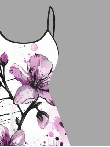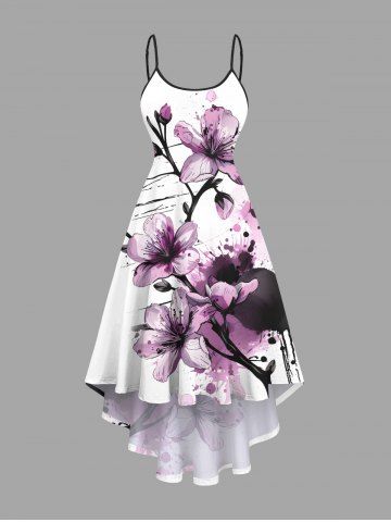 Plus Size Flowers Watercolor Paint Splatter Print High Low Hawaii Cami Dress - Purple - 5x