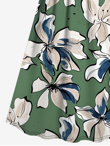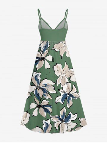 Plus Size Flowers Watercolor Print Surplice Hawaii Cami Dress - Light Green - 5x
