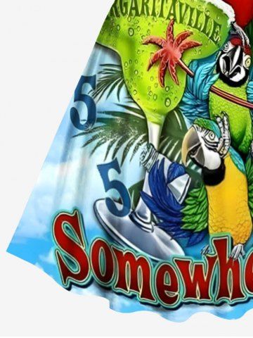 Plus Size Fruit Juice Parrots Tropical Leaf Print Hawaii Vintage Dress - Blue - Xs