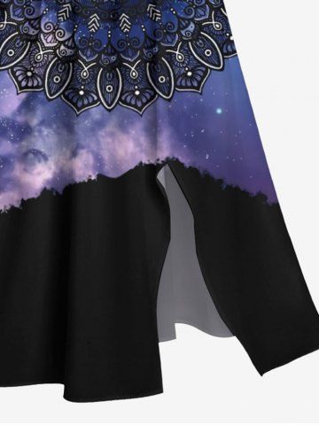 Plus Size Galaxy Ethnic Floral Colorblock Print Split Midi Dress - Midnight Blue - 5x