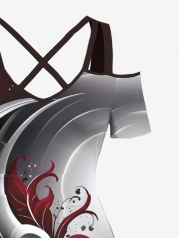 Plus Size Galaxy Floral Leaf Print Cold Shoulder Crisscross Hawaii Maxi Dress - Black - 4x