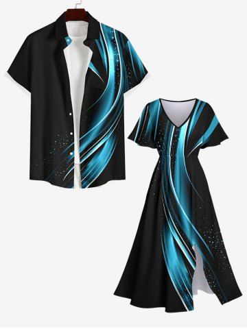 n*****64Galaxy Glitter Light Beam 3D Print Plus Size Matching Beach Outfit For CouplesColor: BLACKso pretty and light. love it for our cruise! my husband even likes the feel of his shirt!