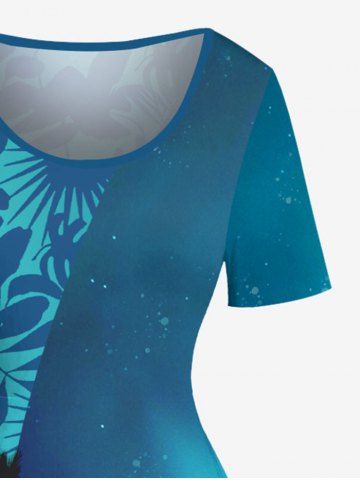 Plus Size Galaxy Ombre Coconut Tree Hibiscus Flowers Leaf Print Hawaii Vintage Dress - Dark Turquoise - 6x
