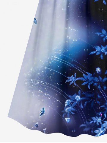 Plus Size Galaxy Ombre Star Leaf Print Surplice Hawaii Cami Dress - Blue - L