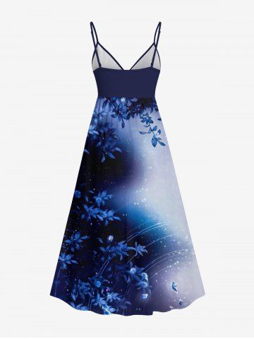 Plus Size Galaxy Ombre Star Leaf Print Surplice Hawaii Cami Dress - Blue - 1x