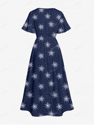 Plus Size Galaxy Print Pockets Split Dress - Deep Blue - Xs