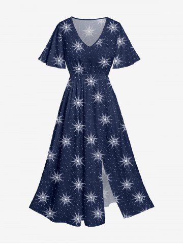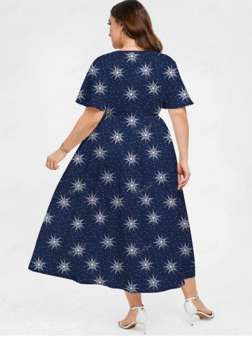 Plus Size Galaxy Print Pockets Split Dress - Deep Blue - M