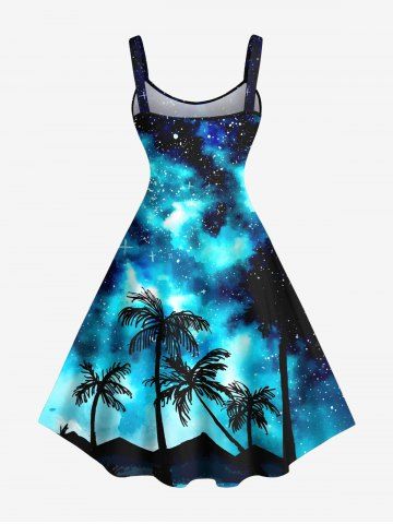 Graphic Dresses > Plus Size Galaxy Star Coconut Tree Print Hawaii Tank Dress