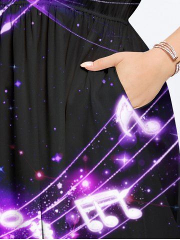 Plus Size Galaxy Star Music Notes Glitter 3D Print Split Midi Dress - Purple - S