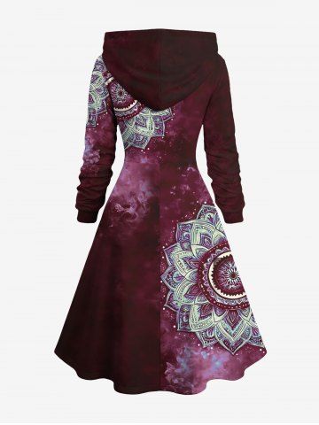 Graphic Dresses > Plus Size Galaxy Tie Dye Flowers Print Lace Up Drawstring Hoodie Dress