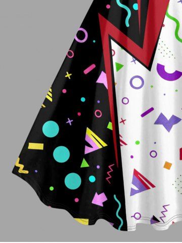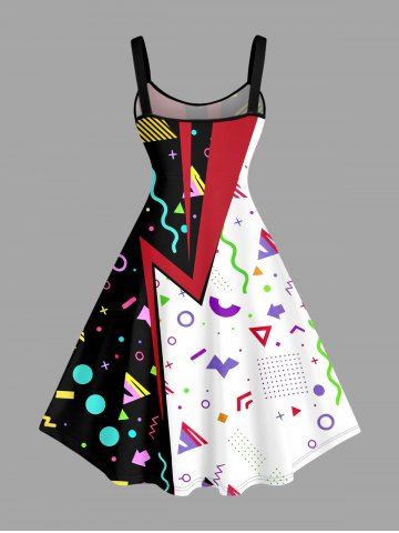 Plus Size Geometric Pattern Colorblock Print Hawaii Tank Dress - Black - 2x