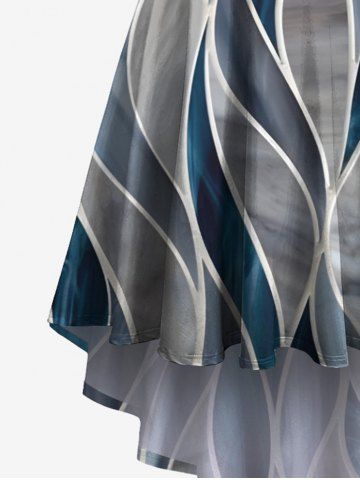 Plus Size Geometric Patterns Colorblock Print High Low Hawaii Cami Dress - Dark Gray - Xxs