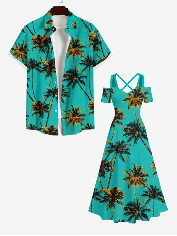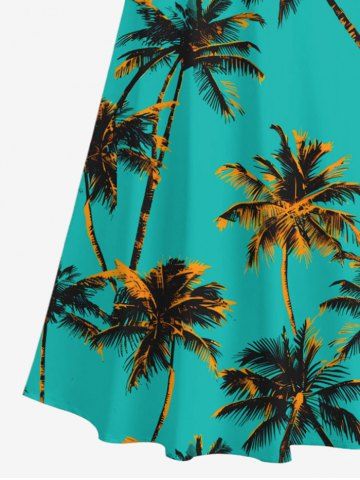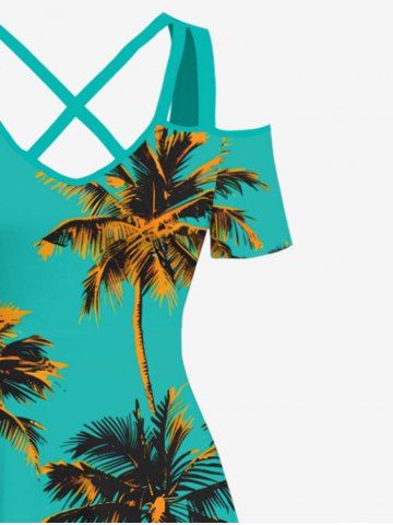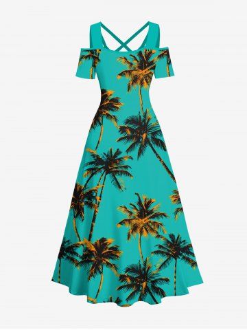Plus Size Gilding Coconut Tree Print Hawaii Crisscross A Line Maxi Dress - Green - 1x