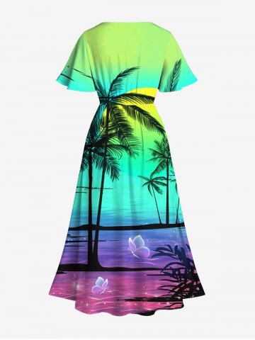 M*****l5Plus Size Glitter Butterfly Ombre Sea Sun Coconut Tree Print Hawaii Split Pocket DressColor: MULTI-A Size: 4Xdress fits perfectly! beautiful and flowy definitely will be buying from rosegal again!!! perfect for Hawaiian wedding
