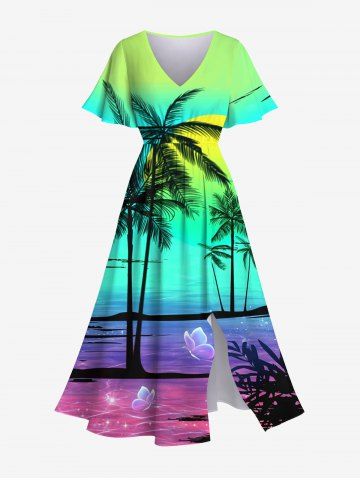 M*****l5Plus Size Glitter Butterfly Ombre Sea Sun Coconut Tree Print Hawaii Split Pocket DressColor: MULTI-A Size: 4Xdress fits perfectly! beautiful and flowy definitely will be buying from rosegal again!!! perfect for Hawaiian wedding