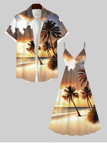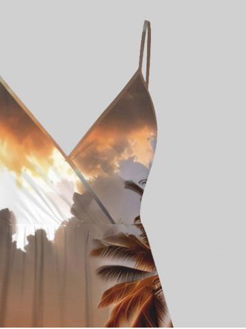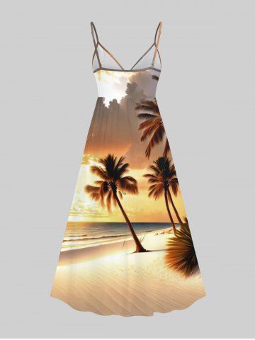 Graphic Dresses > Plus Size Glitter Coconut Tree Sea Beach Dusk Print Hawaii Surplice A Line Cami Dress