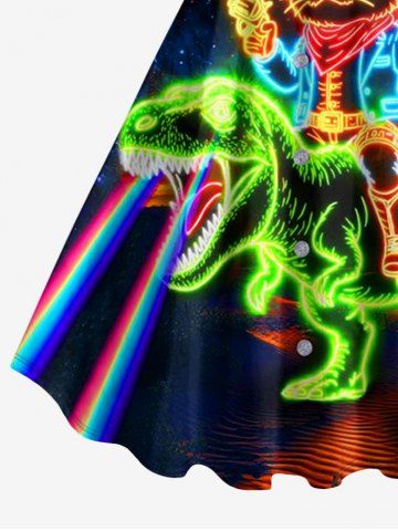 Plus Size Glitter Dinosaur Cat Planet Galaxy Print Hawaii A Line Dress - Black - 6x