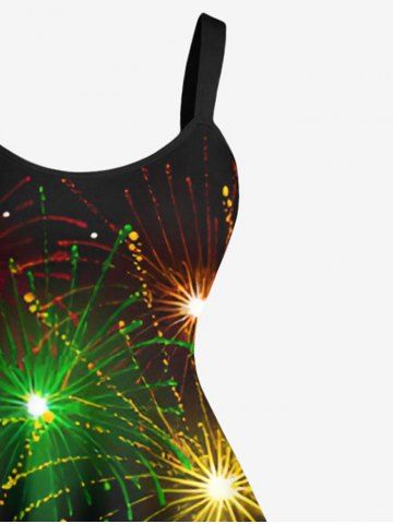 Plus Size Glitter Fireworks City Print Party New Years Eve A Line Tank Dress - Black - 3x