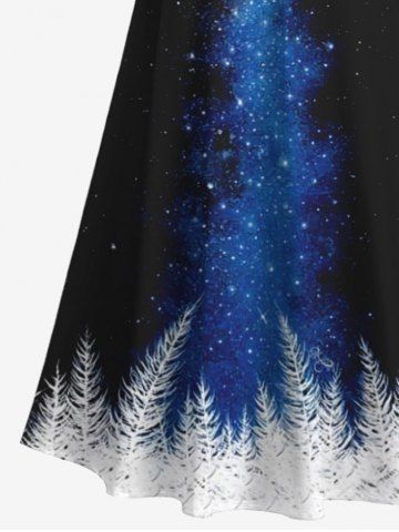 Plus Size Glitter Galaxy Grass Print Hawaii Crisscross A Line Maxi Dress - Blue - 4x