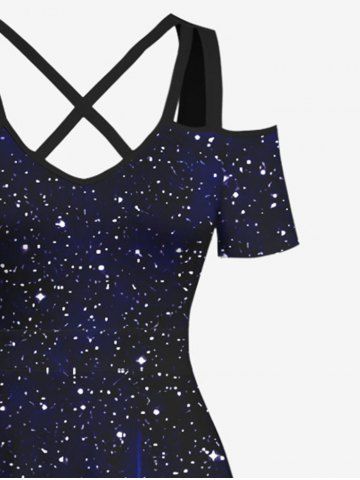 Plus Size Glitter Galaxy Star Moon Cloud Print Hawaii Ombre Crisscross A Line Maxi Dress - Multi-a - M