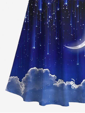 Graphic Dresses > Plus Size Glitter Galaxy Star Moon Cloud Print Hawaii Ombre Crisscross A Line Maxi Dress