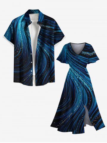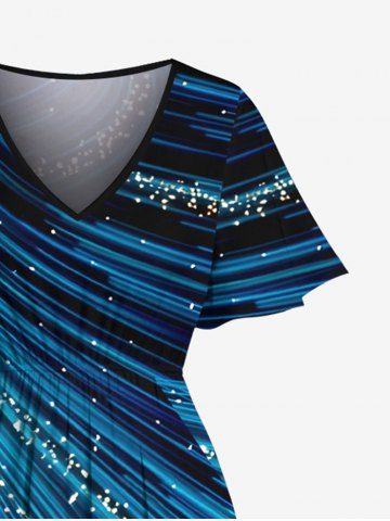 Plus Size Glitter Light Beam Print Hawaii Split Pocket A Line Midi Dress - Navy Blue - 3x