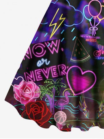 Plus Size Glitter Neon Ombre Heart Rose Flower Balloon Flamingo Coconut Tree Butterfly Print Hawaii A LIne Tank Dress - Black - L