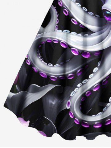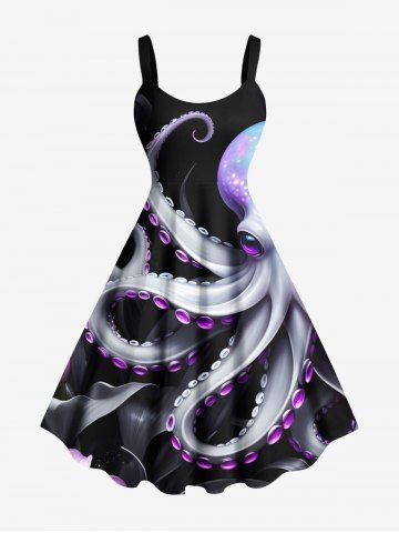 Graphic Dresses > Plus Size Glitter Octopus Tropical Leaves Print Hawaii A Line Tank Dress