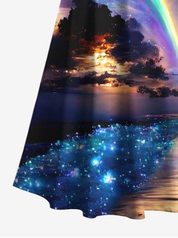 Graphic Dresses > Plus Size Glitter Ombre Galaxy Aurora Dusk Sea Print Hawaii Cold Shoulder Crisscross A Line Maxi Dress