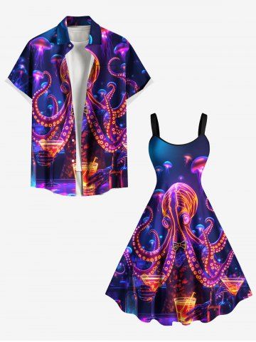 Graphic Dresses > Plus Size Glitter Ombre Octopus Jellyfish Party Print Hawaii A Line Tank Dress