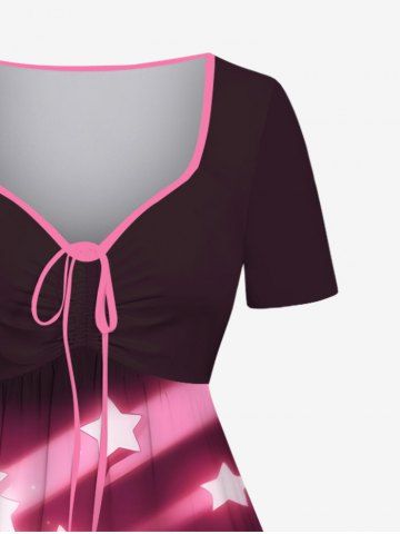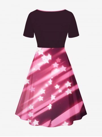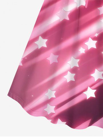 Plus Size Glitter Shooting Stars Print Cinched Ombre A Line Dress - Light Pink - 6x