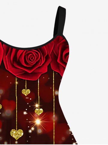 Plus Size Glitter Sparkling Rose Flower Heart Print Valentines Ombre A Line Tank Party Dress - Deep Red - 2x