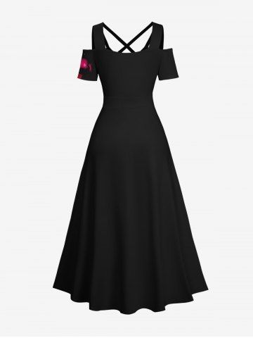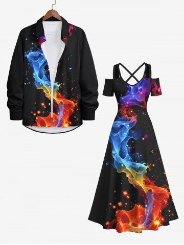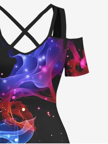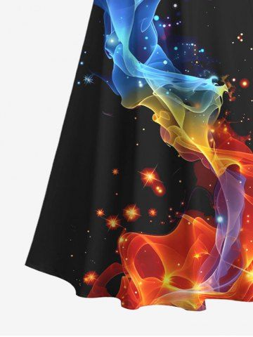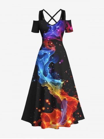 Plus Size Glitter Sparkling Colorful Smoke Ribbon Light Beam Print Hawaii Crisscross A Line Maxi Dress - Black - 6x