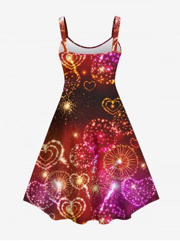 Plus Size Glitter Sparkling Heart Fireworks Print Valentines Ombre A Line Tank Party Dress - Deep Red - 1x