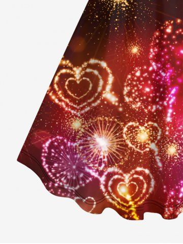 Plus Size Glitter Sparkling Heart Fireworks Print Valentines Ombre A Line Tank Party Dress - Deep Red - 3x