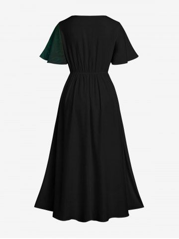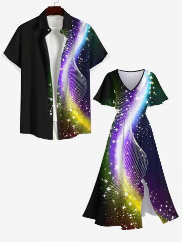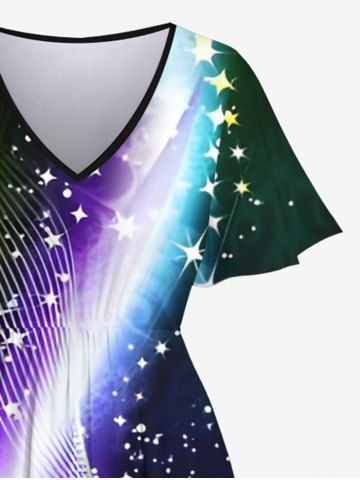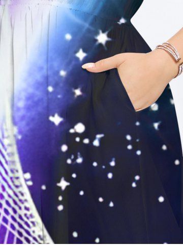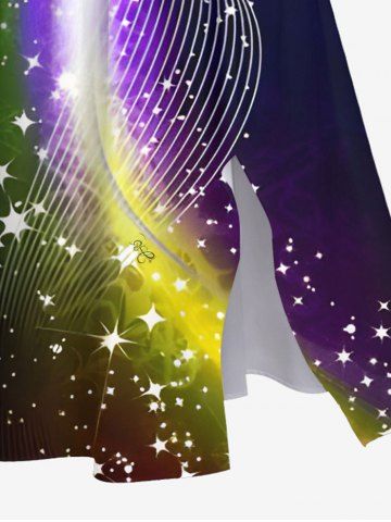 Plus Size Glitter Sparkling Light Beam Curve Stars Galaxy Print Hawaii Split Pocket A Line Midi Dress - Black - 1x