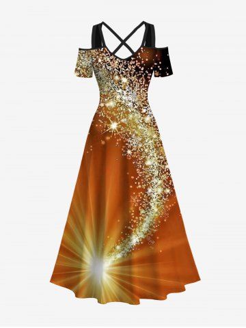 Plus Size Glitter Sparkling Light Beam Stars Snowflake Print Hawaii Ombre Crisscross A Line Maxi Dress - Dark Orange - 1x