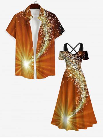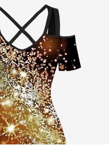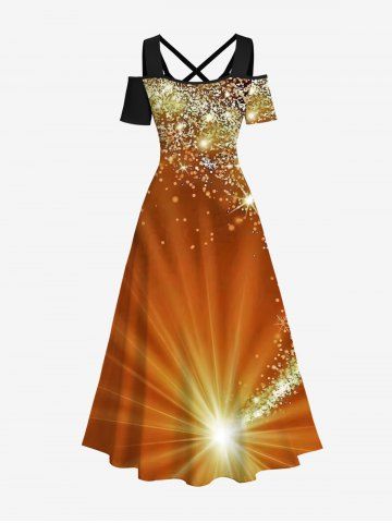 Plus Size Glitter Sparkling Light Beam Stars Snowflake Print Hawaii Ombre Crisscross A Line Maxi Dress - Dark Orange - 6x