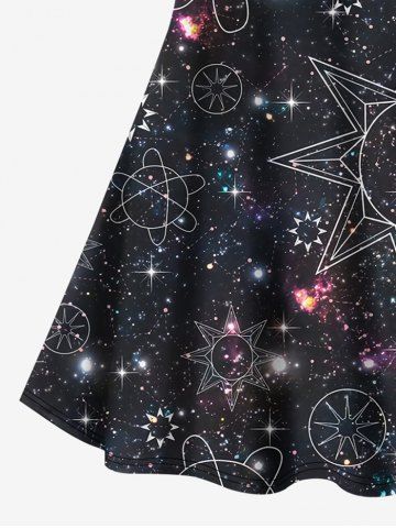 Graphic Dresses > Plus Size Glitter Sun Moon Planet Galaxy Print Crisscross A Line Cami Dress