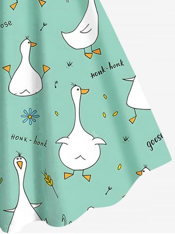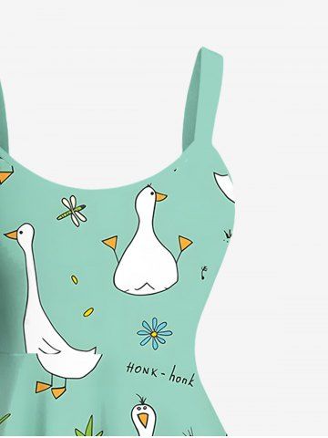 Plus Size Goose Flowers Dragonfly Wheat Print Hawaii Tank Dress - Light Green - M