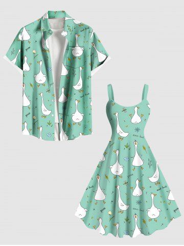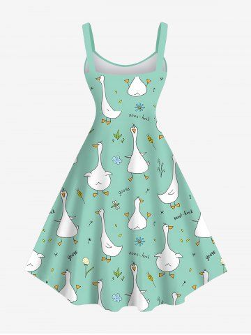 Plus Size Goose Flowers Dragonfly Wheat Print Hawaii Tank Dress - Light Green - 1x
