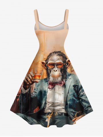 Graphic Dresses > Plus Size Gorilla Boss Ombre Print Hawaii Tank Dress