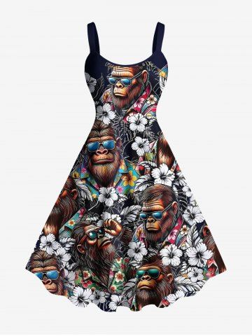 Graphic Dresses > Plus Size Gorillas Tropical Flowers Print Hawaii Tank Dress