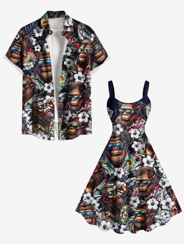 Graphic Dresses > Plus Size Gorillas Tropical Flowers Print Hawaii Tank Dress
