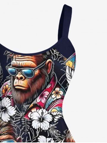 Plus Size Gorillas Tropical Flowers Print Hawaii Tank Dress - Black - 4x