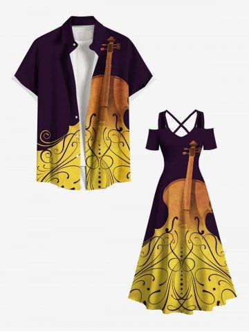 Plus Size Guitar Curve Print Music Crisscross A Line Maxi Dress - Yellow - 1x
