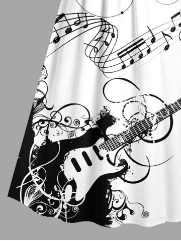Plus Size Guitar Music Symbol Print Hawaii Surplice A Line Cami Dress - White - 2x